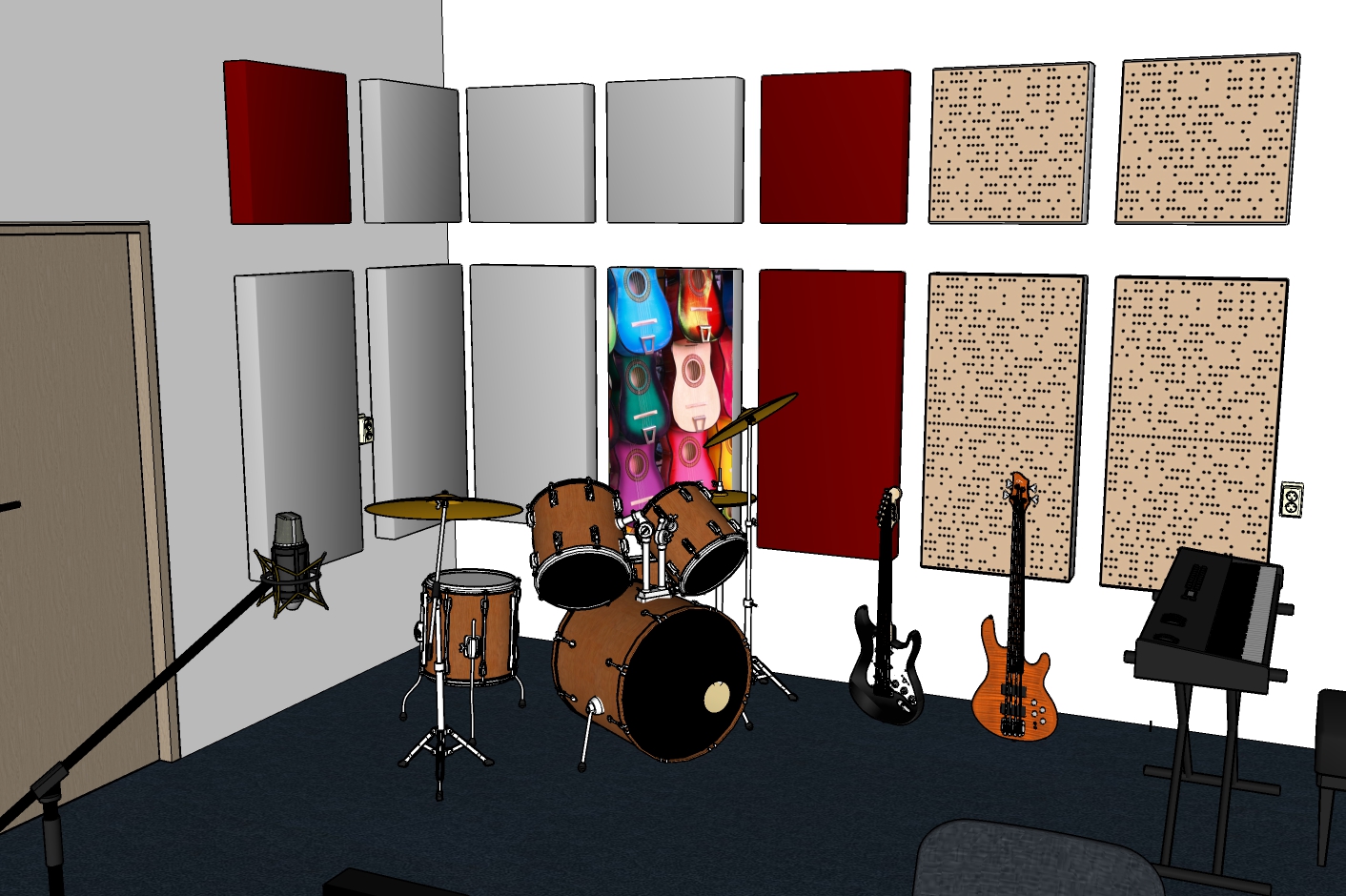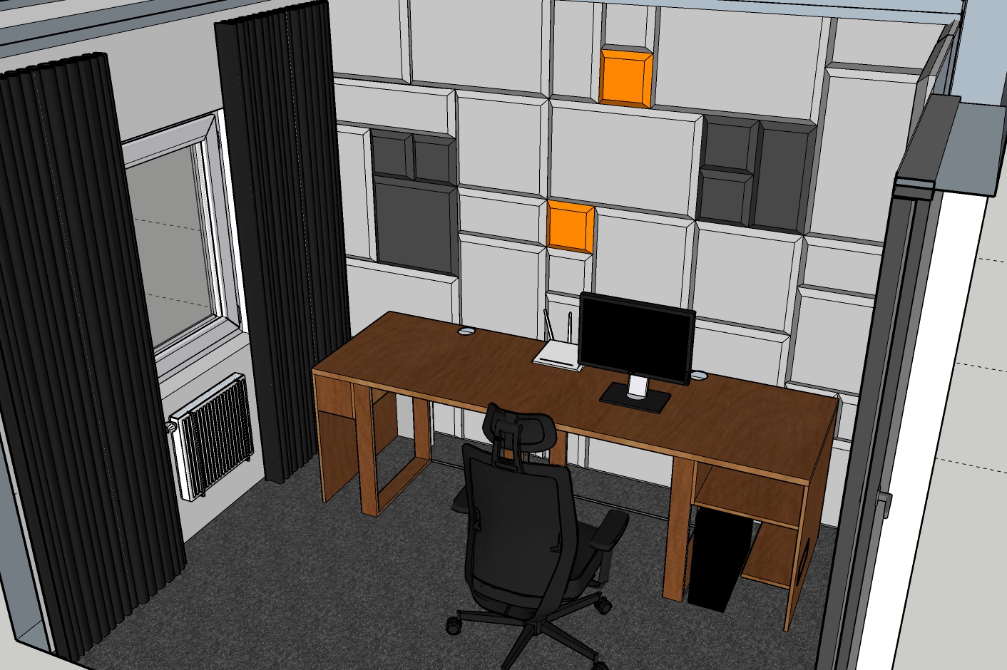 Adptacja akustyczna pomieszczenia jest jednym z elementów, który nadaje wnętrzu pewien klimat estetyczny. Dobór odpowiednich modeli paneli aksutycznych, ich wielkości i kolorów, często ma decydujacy wpływ na wygląd i aranżację wnetrza. Wizualizacja 3D to doskonały sposób, aby zobaczyć prognozowany efekt końcowy zanim przystąpi się do realizacji projektu. Na tym etapie można jeszcze zmienić kolorystkę paneli, opracować szczegóły lub ewentulanie zmienić aranżację elemetnów wnętrza.